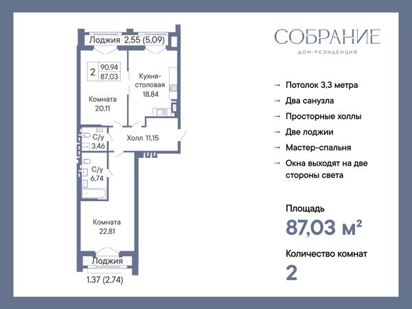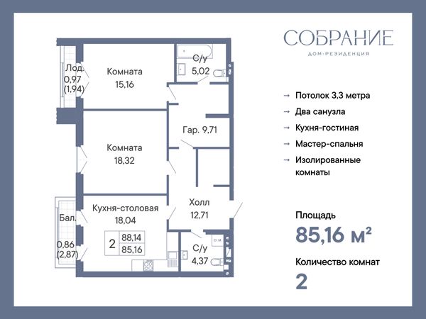 Купить двухкомнатную квартиру в ЖК «Дом-Резиденция Собрание» в Ростове‑на‑Дону