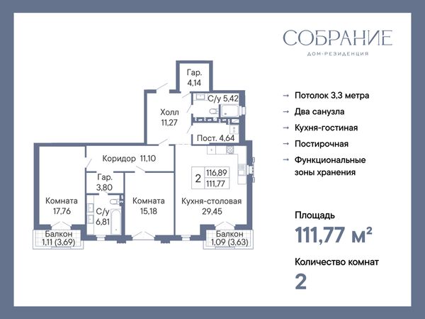 2-комнатная — 111,77 м²