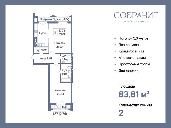 2-комнатная — 83,81 м²