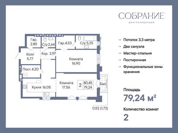 2-комнатная — 79,24 м²