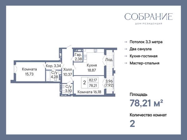 2-комнатная — 78,21 м²