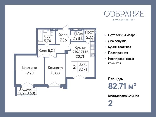 2-комнатная — 82,71 м²