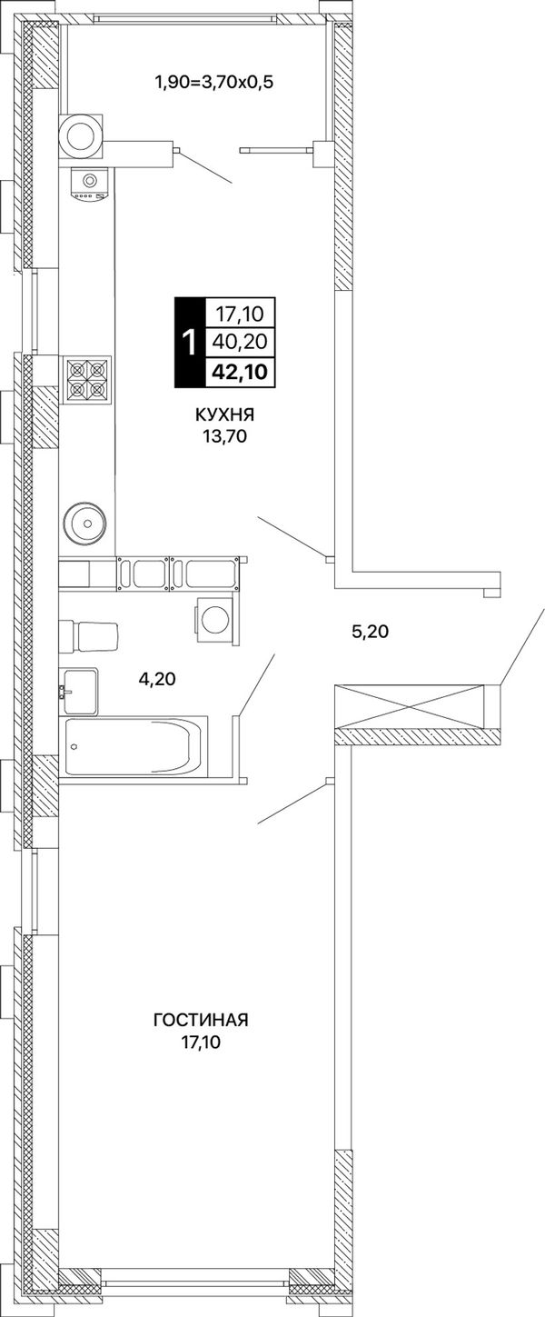 1-комнатная42,1 м²Ростовская область, Ростов-на-Дону, Пролетарский, проспект Шолохова