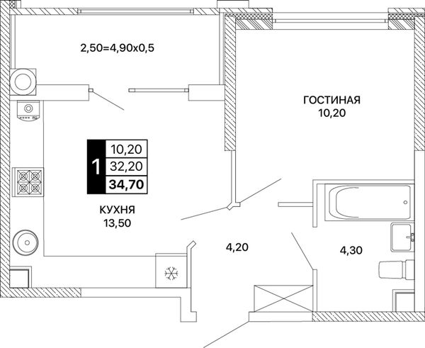1-комнатная34,7 м²Ростовская область, Ростов-на-Дону, Пролетарский, проспект Шолохова