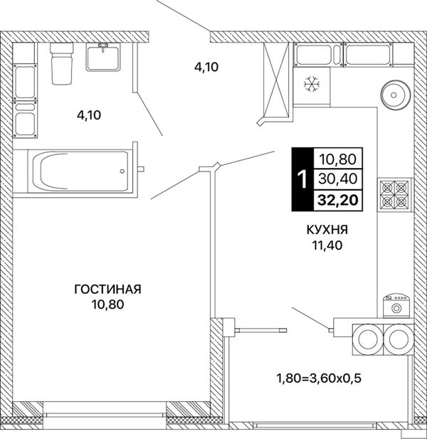 1-комнатная32,2 м²Ростовская область, Ростов-на-Дону, Пролетарский, проспект Шолохова