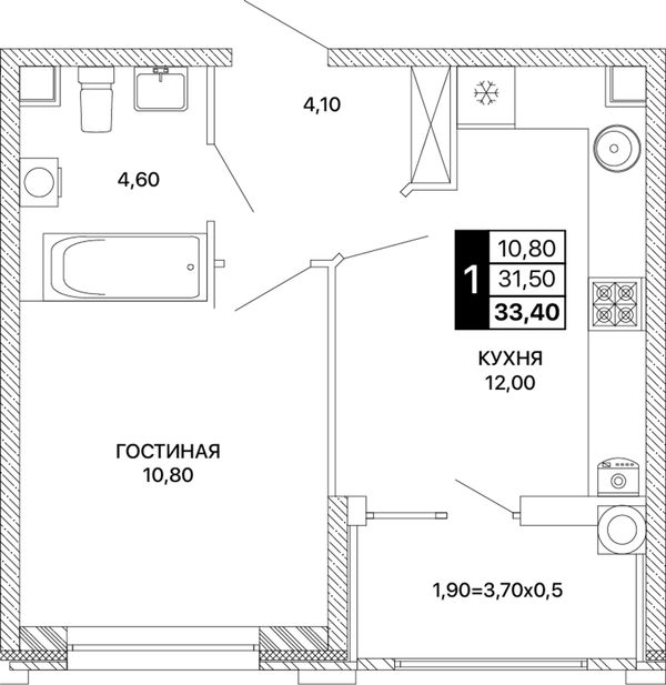 1-комнатная33,4 м²Ростовская область, Ростов-на-Дону, Пролетарский, проспект Шолохова
