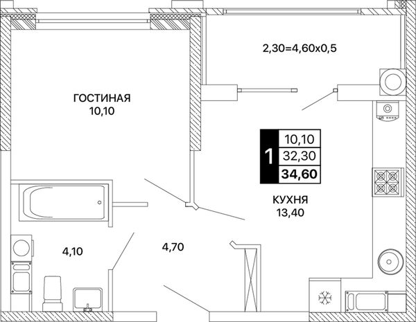 1-комнатная34,6 м²Ростовская область, Ростов-на-Дону, Пролетарский, проспект Шолохова