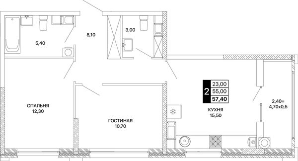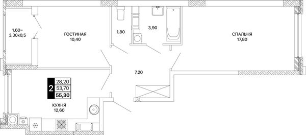 2-комнатная — 55,3 м²