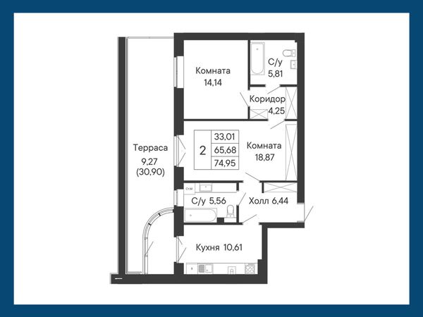 2-комнатная74,95 м²Ростовская область, Ростов-на-Дону, Бориславский переулок, 47