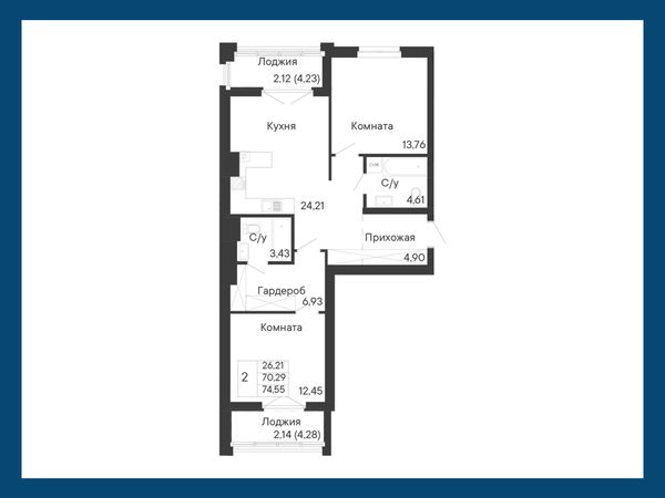 2-комнатная74,55 м²Ростовская область, Ростов-на-Дону, Бориславский переулок, 47