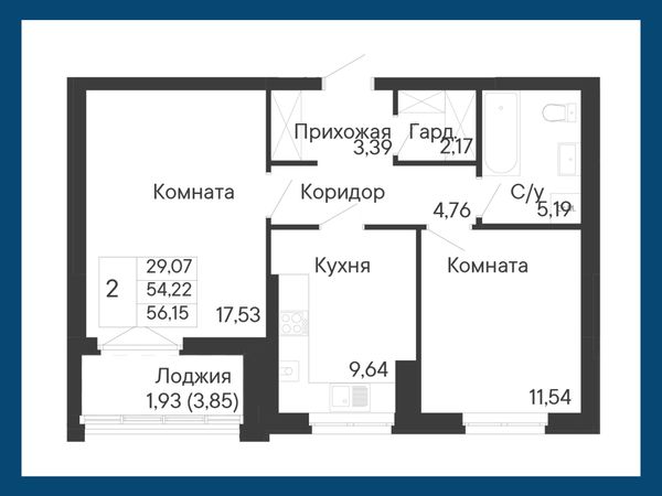 2-комнатная56,15 м²Ростовская область, Ростов-на-Дону, Бориславский переулок, 47