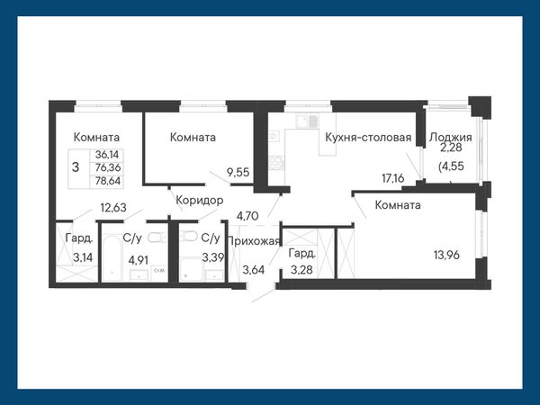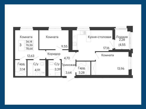 3-комнатная78,64 м²Ростовская область, Ростов-на-Дону, Бориславский переулок, 47