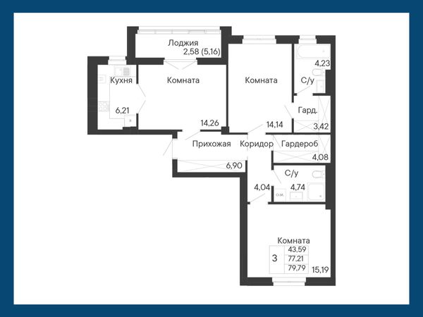 3-комнатная79,79 м²Ростовская область, Ростов-на-Дону, Бориславский переулок, 47