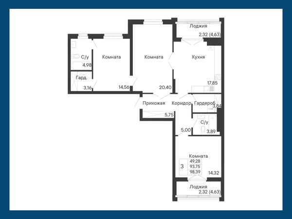 3-комнатная98,39 м²Ростовская область, Ростов-на-Дону, Бориславский переулок, 47