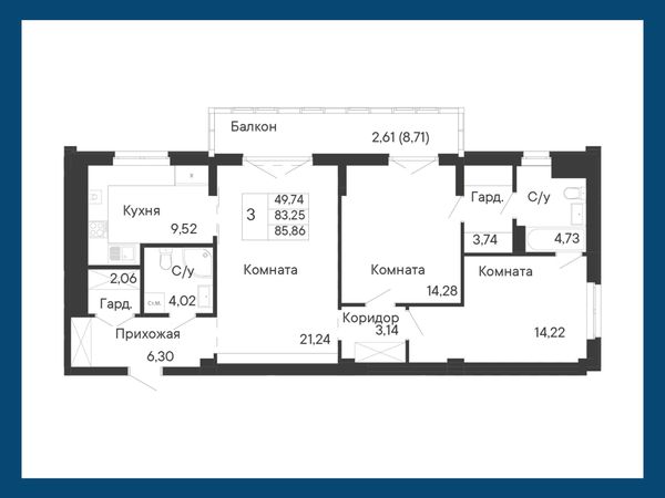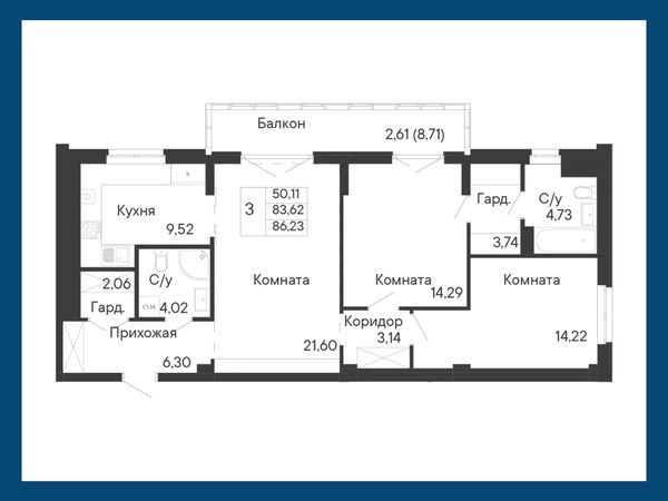 3-комнатная86,23 м²Ростовская область, Ростов-на-Дону, Бориславский переулок, 47