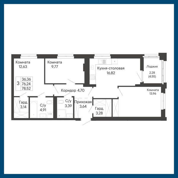 3-комнатная78,52 м²Ростовская область, Ростов-на-Дону, Бориславский переулок, 47