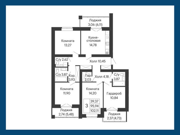3-комнатная104,11 м²Ростовская область, Ростов-на-Дону, Бориславский переулок, 47