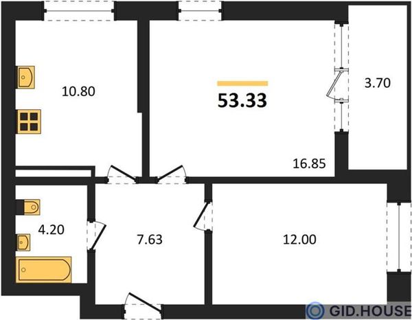 2-комнатная53,33 м²Ростовская область, Ростов-на-Дону, Октябрьский, улица Нансена, 83