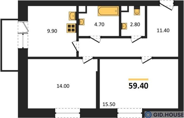 2-комнатная59,4 м²Ростовская область, Ростов-на-Дону, Октябрьский, улица Нансена, 83