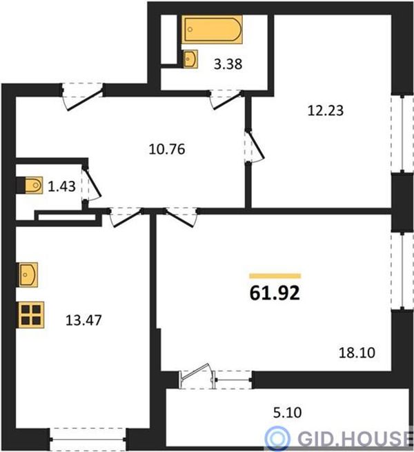 2-комнатная61,92 м²Ростовская область, Ростов-на-Дону, Октябрьский, улица Нансена, 83
