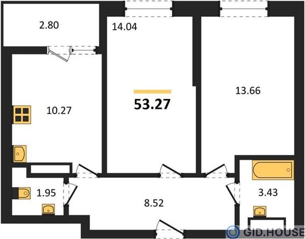 2-комнатная53,27 м²Ростовская область, Ростов-на-Дону, Октябрьский, улица Нансена, 83