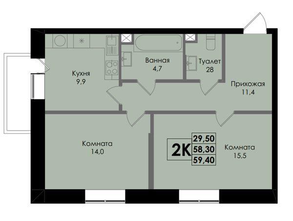 2-комнатная59,4 м²Ростовская область, Ростов-на-Дону, Ленинский, Курская улица