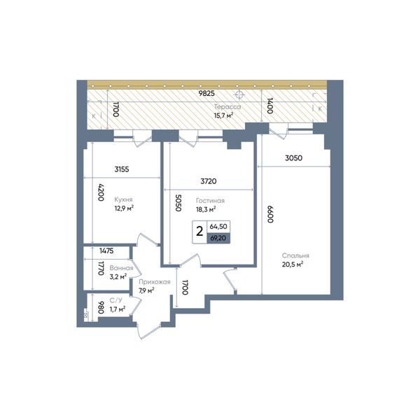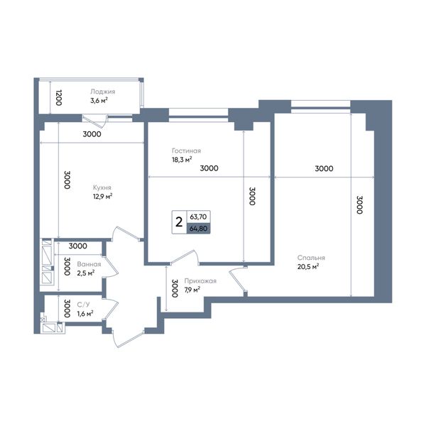 2-комнатная66,9 м²Ростовская область, Ростов-на-Дону, Советский, проспект Стачки, 198В
