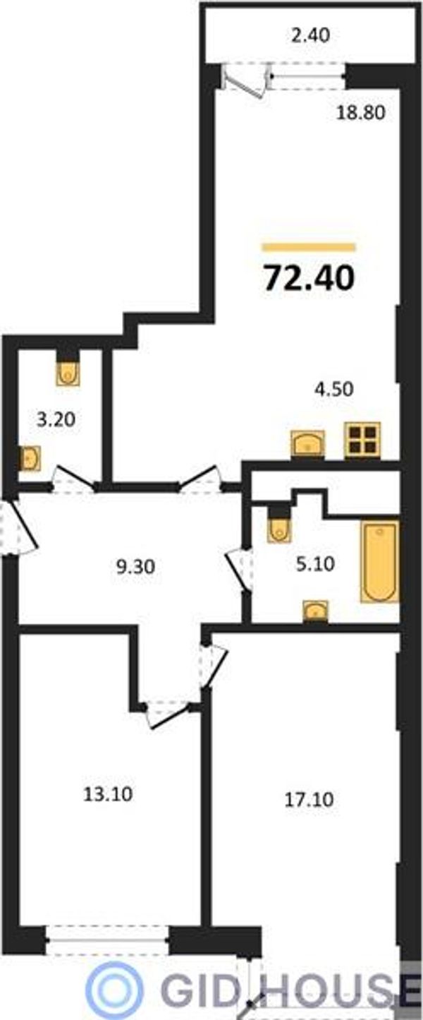 2-комнатная — 72,4 м²