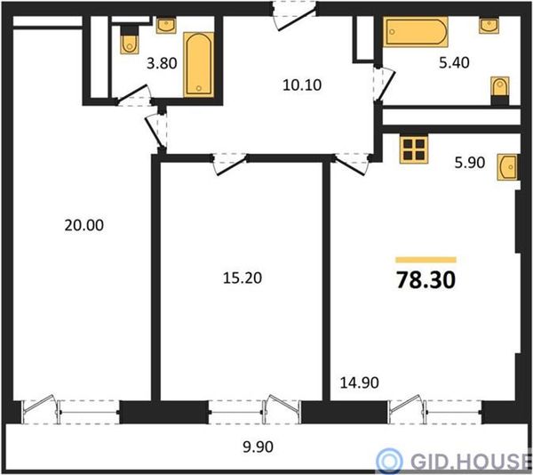 2-комнатная — 78,3 м²