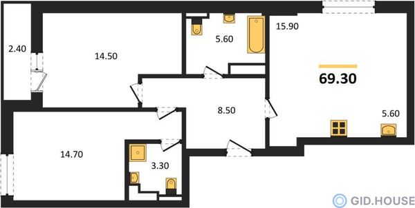 2-комнатная — 69,3 м²