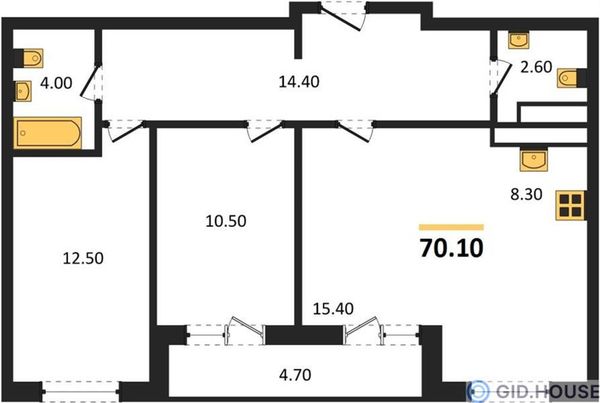 2-комнатная — 70,1 м²