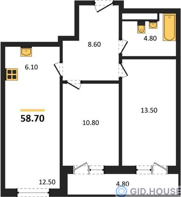 2-комнатная — 58,7 м²