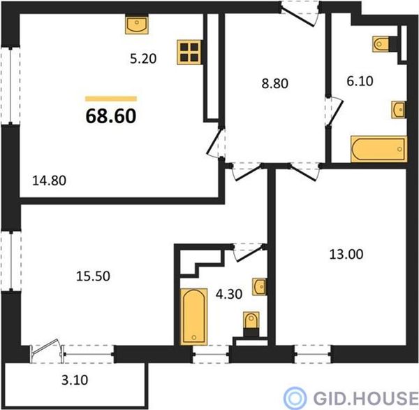 2-комнатная — 68,6 м²