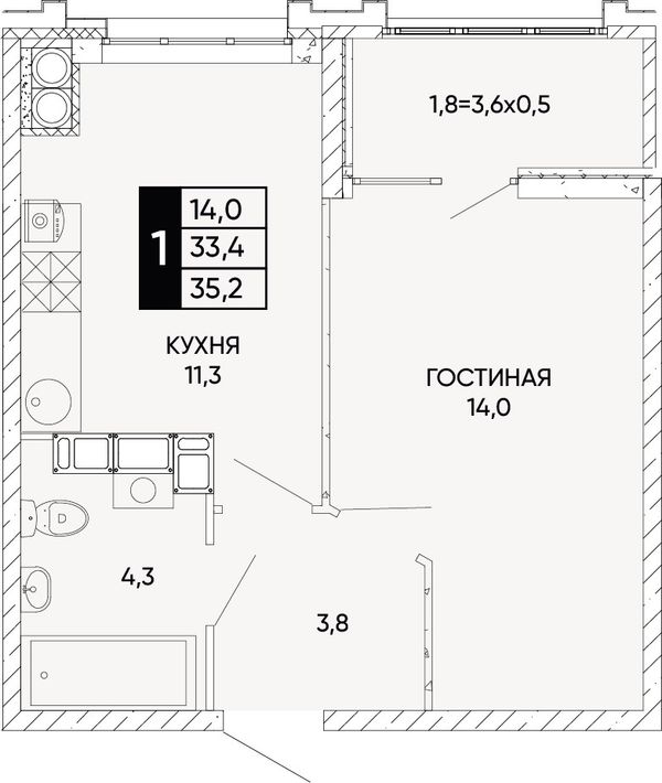 1-комнатная35,2 м²Ростовская область, Ростов-на-Дону, Левобережная улица