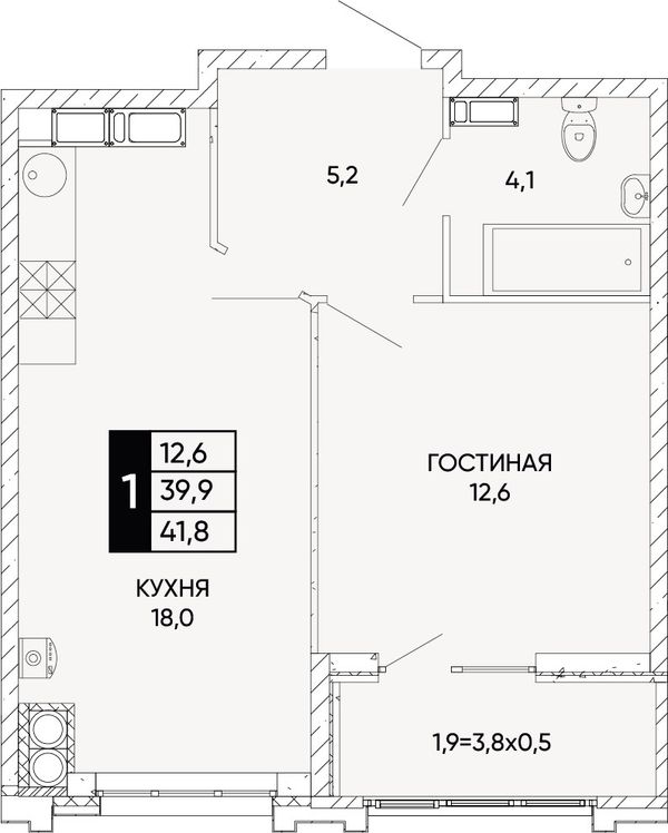 1-комнатная41,8 м²Ростовская область, Ростов-на-Дону, Левобережная улица