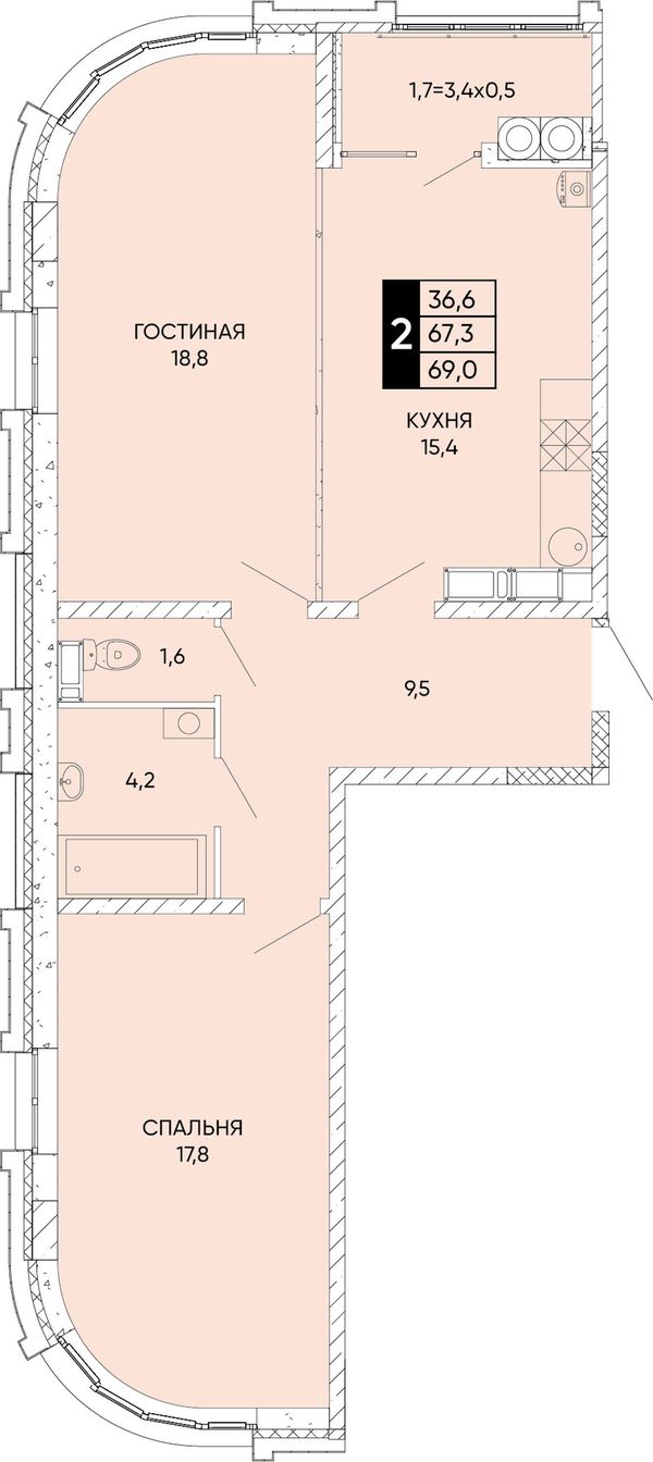 2-комнатная — 68,9 м²