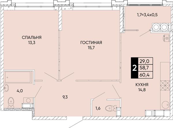 2-комнатная — 60,4 м²