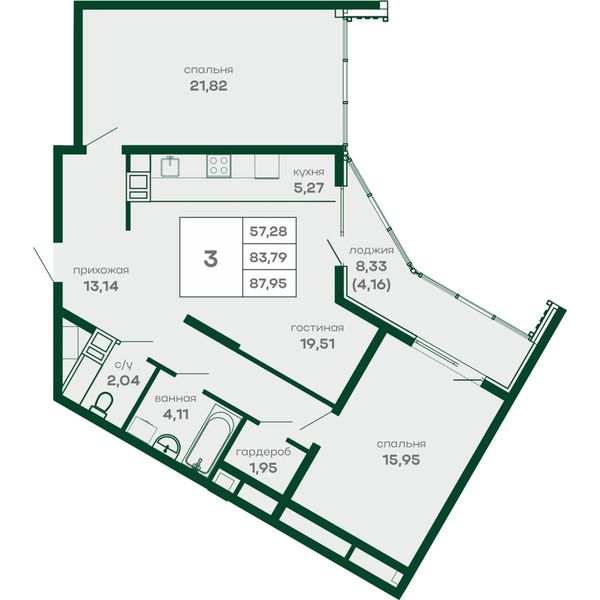 3-комнатная — 87,95 м²