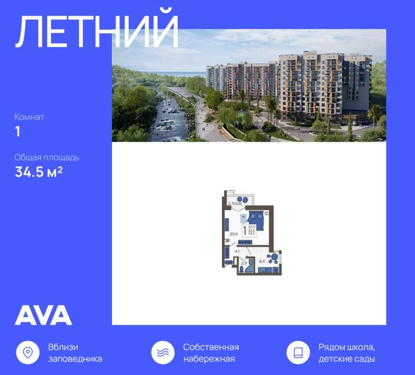 Купить однокомнатную квартиру в ЖК «Летний» в Сочи в Краснодарском крае
