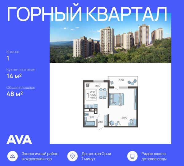 1-комнатная — 48 м²