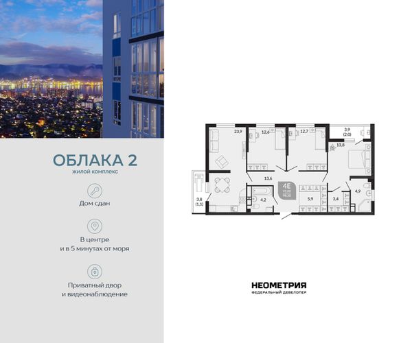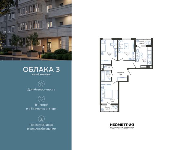 Купить трёхкомнатную квартиру в ЖК «Облака» в Новороссийске