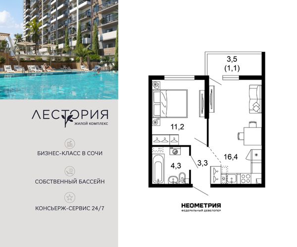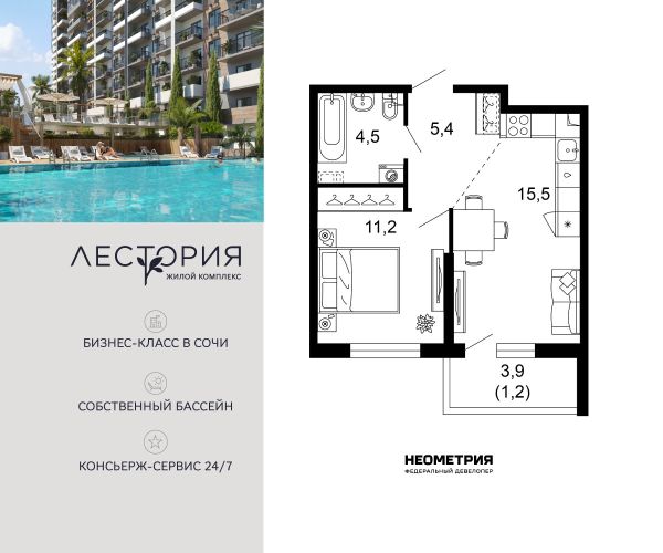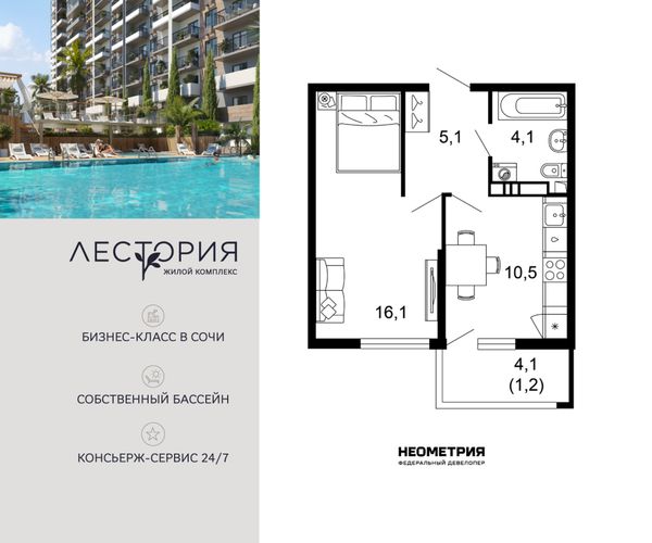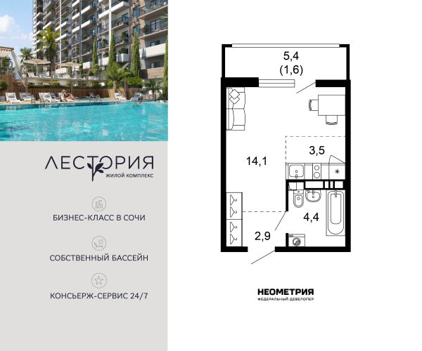 Купить однокомнатную квартиру в ЖК «Лестория» в Сочи в Краснодарском крае