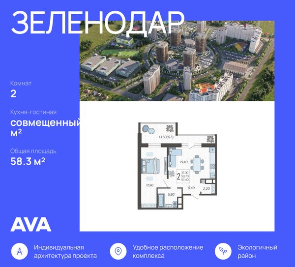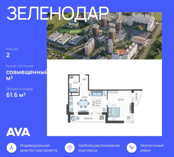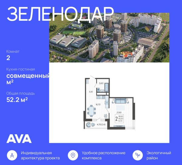 Купить двухкомнатную квартиру в ЖК «Зеленодар» в Краснодаре