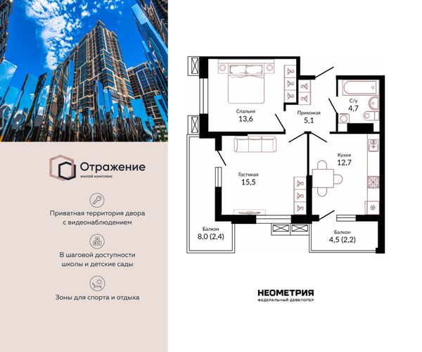 Купить двухкомнатную квартиру в ЖК «Отражение» в Краснодаре