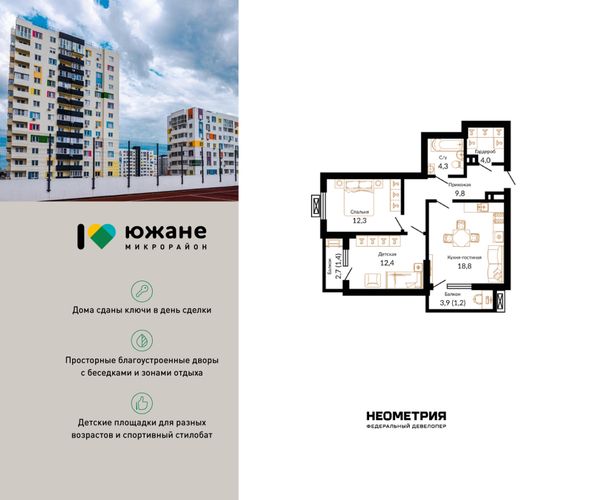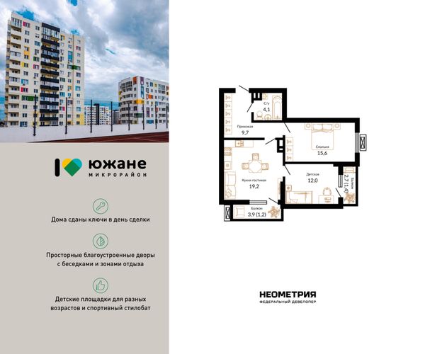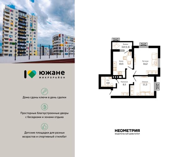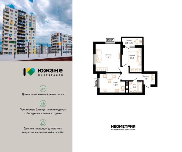 Купить двухкомнатную квартиру в ЖК «Южане» в Краснодаре