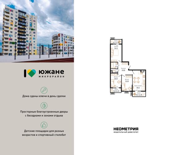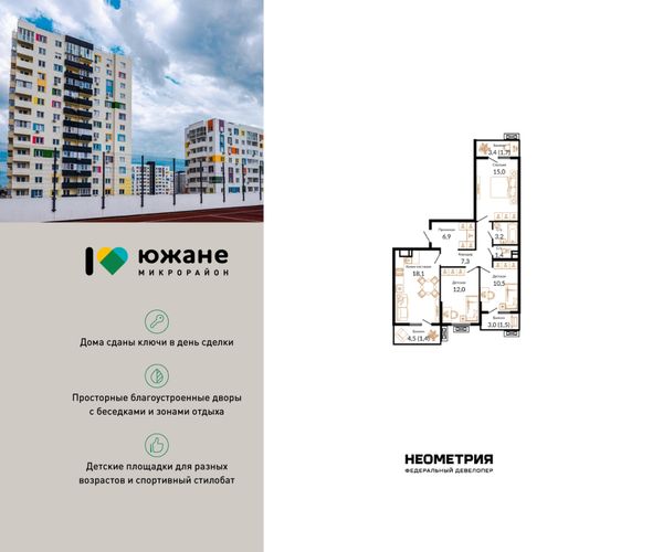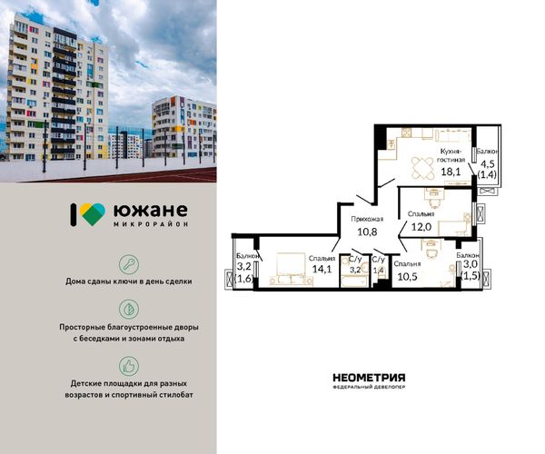 Купить трёхкомнатную квартиру в ЖК «Южане» в Краснодаре