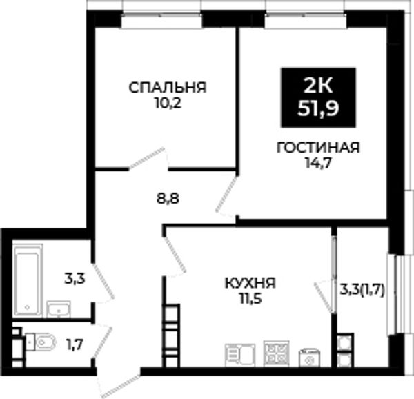 2-комнатная — 51,9 м²
