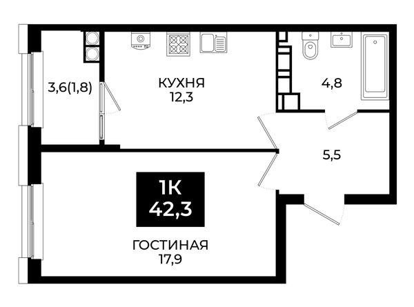 1-комнатная — 42,3 м²