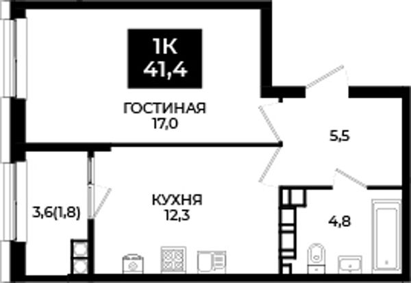1-комнатная — 41,4 м²