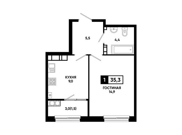 1-комнатная — 35,3 м²
